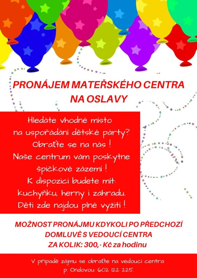 – Pronájem MC na dětské oslavy či školení.