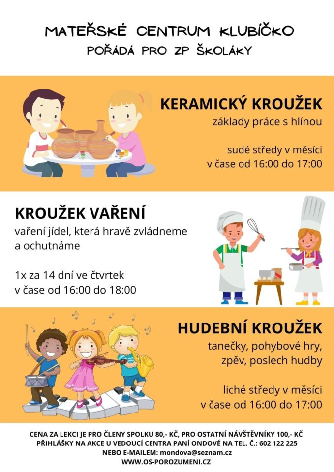 – Zájmové kroužky pro předškoláky i školáky.