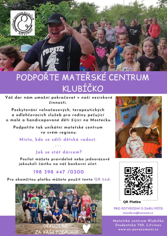 – Poskytujeme pestrou nabídku volnočasových a odlehčovacích aktivit pro rodiny pečující o malé a handicapované děti z celého Mostecka.